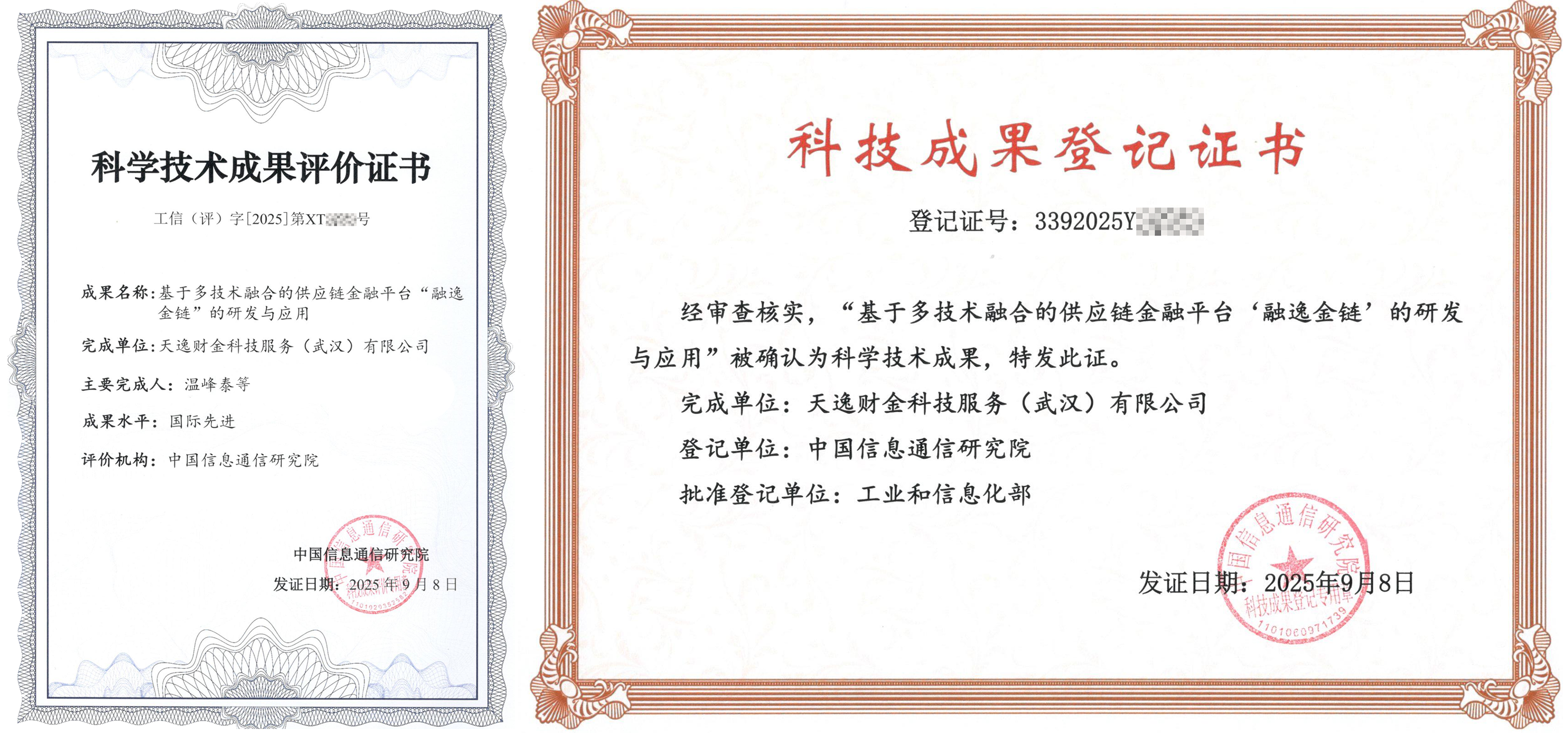 此次荣获认证的科技成果《基于多技术融合的供应链金融平台“融逸金链”的研发与应用》,由工信部评审部门依照国务院办公厅、工信部等在科技成果认定方面的国家政策与规范执行评定,评定结果将登记载入国家科技成果网。
